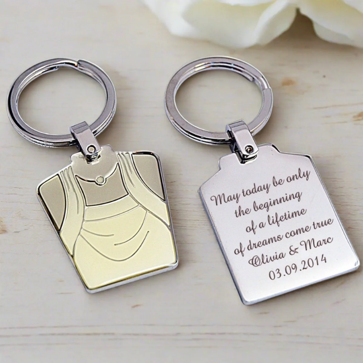 Engraved Keychain Set – Personalised Bride and Groom Wedding Gift with Custom Message