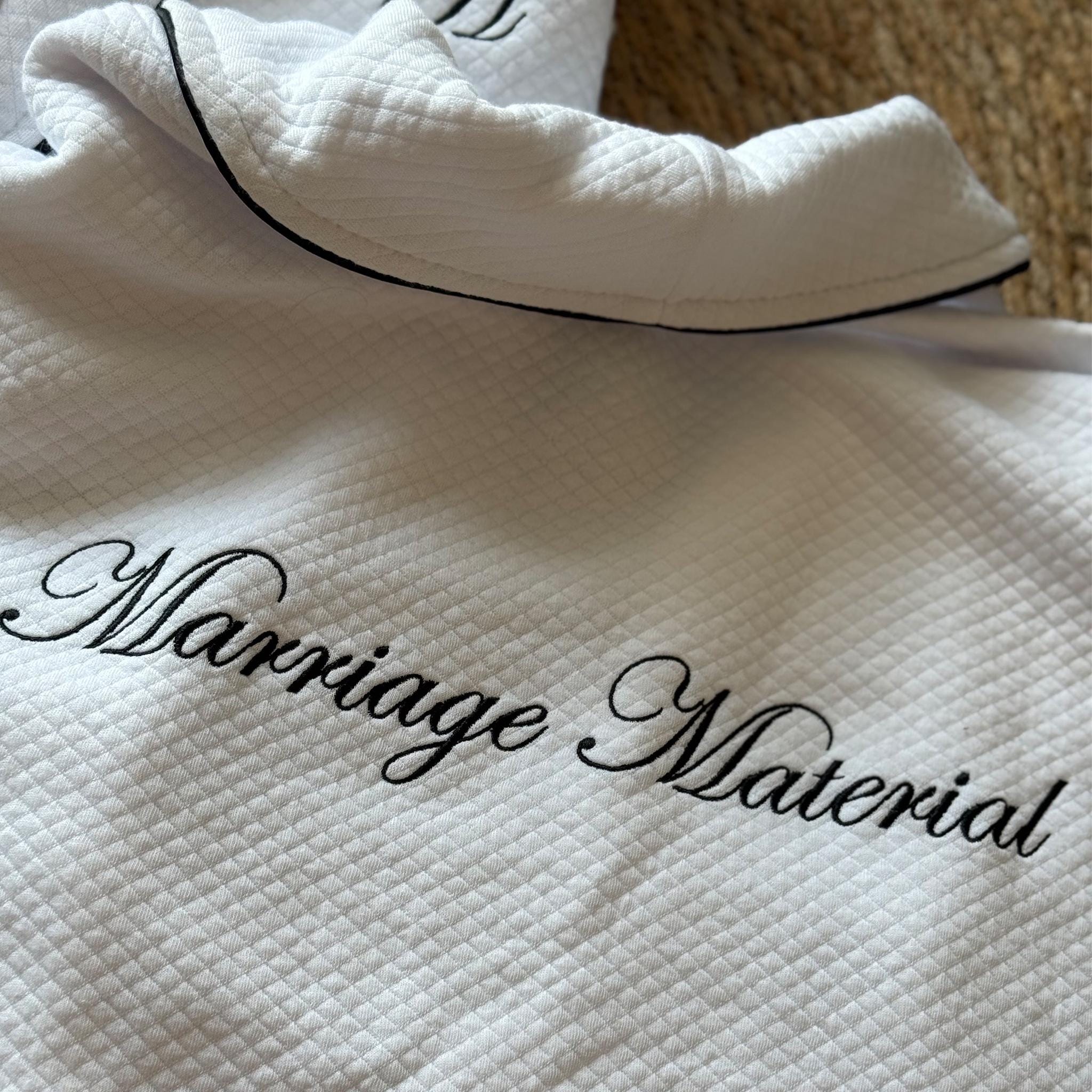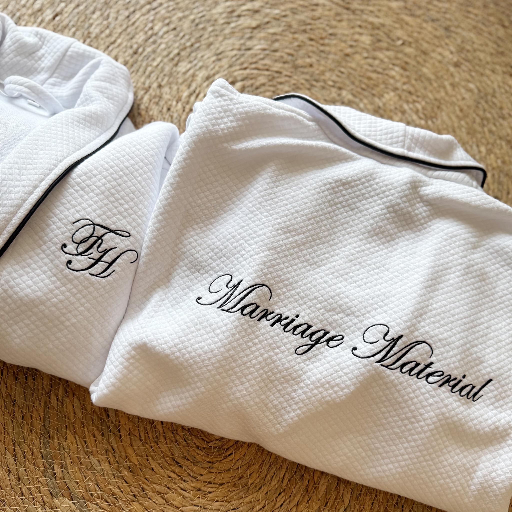 Perfect for brides, bridesmaids, wedding mornings, engagement photos, or elevated everyday living. Each piece is embroidered individually, with careful attention to spacing, thread tension, and balance — created for those who appreciate bespoke details.