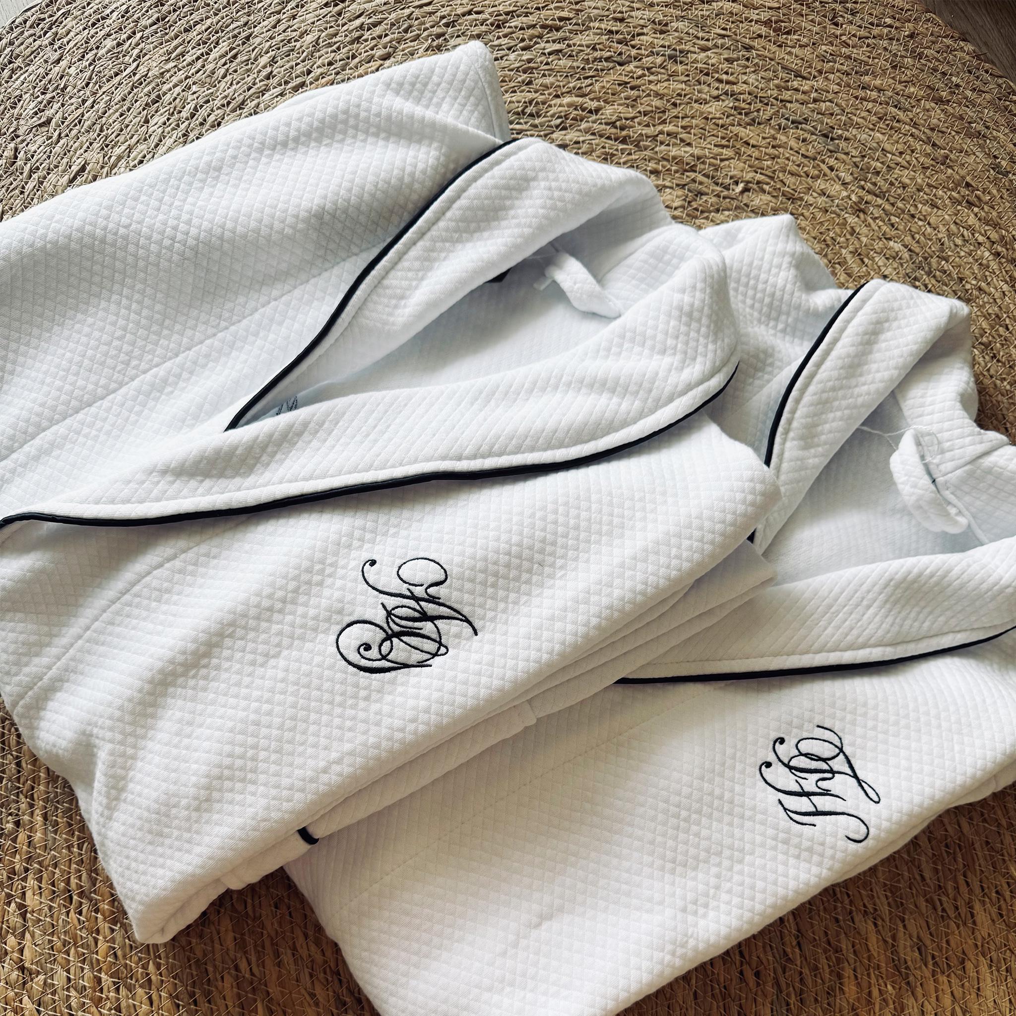 Crafted with a refined outer fiber layer and a soft 100% cotton lining, this robe offers comfort with understated elegance. The minimalist silhouette, paired with custom embroidery on the chest or back, makes it a timeless keepsake rather than a mass-produced item.