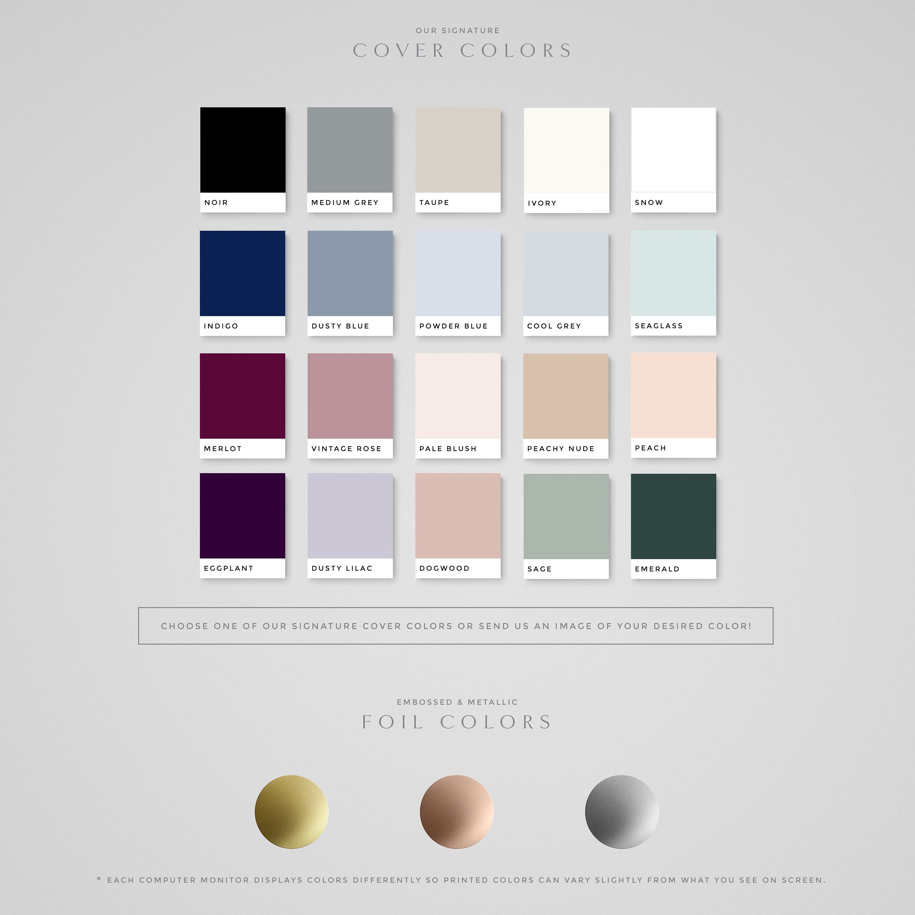 COVER COLORS: Choose from our signature colors show in the photo.