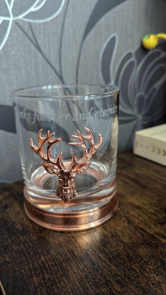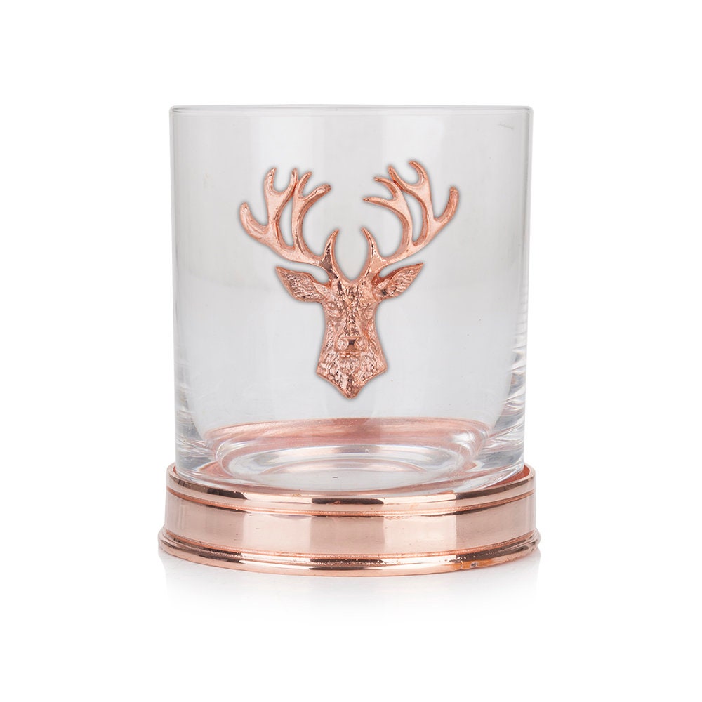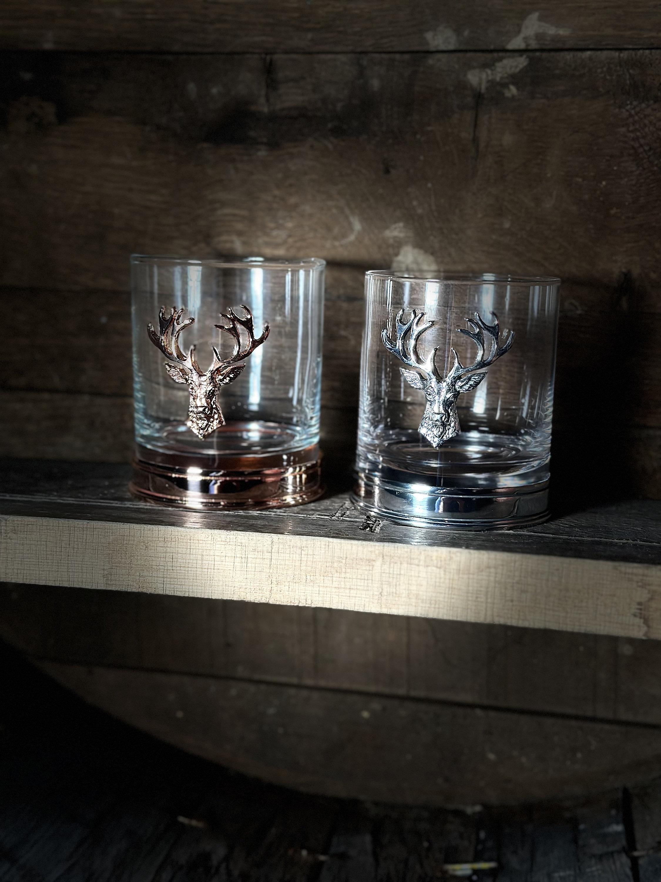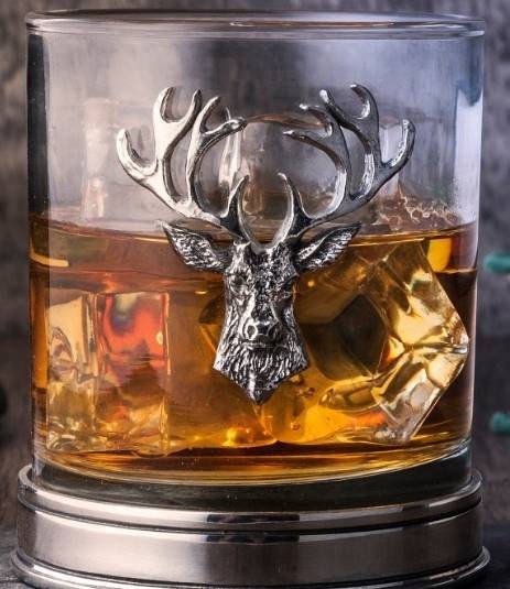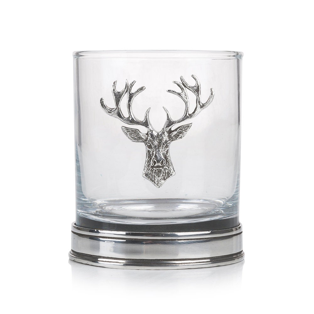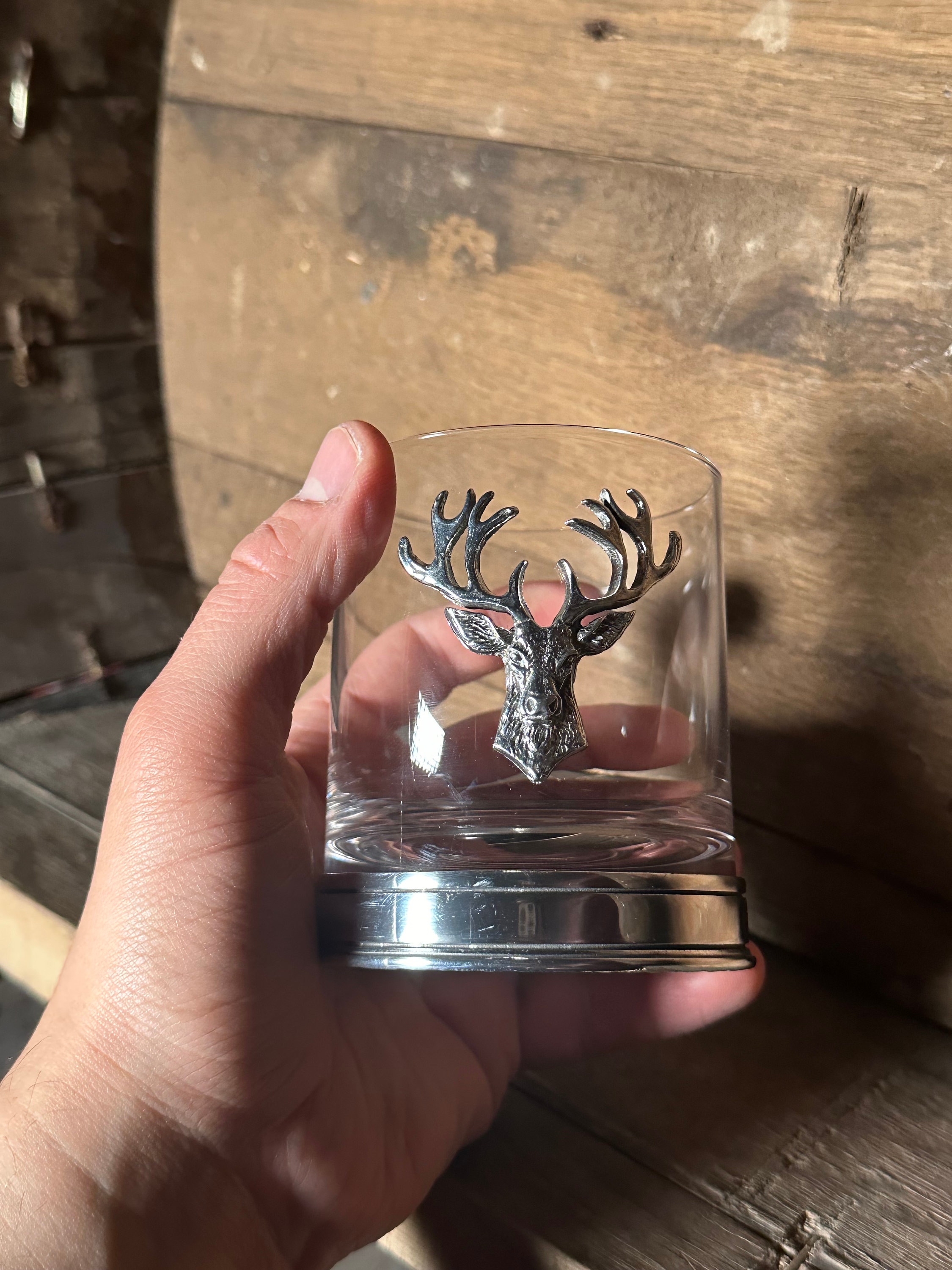 Stag Head Whisky Tumbler with Pewter Base - Handcrafted Rustic Whisky Glass, Luxury Scottish Stag Drinkware, Unique Gift for Whisky Lovers