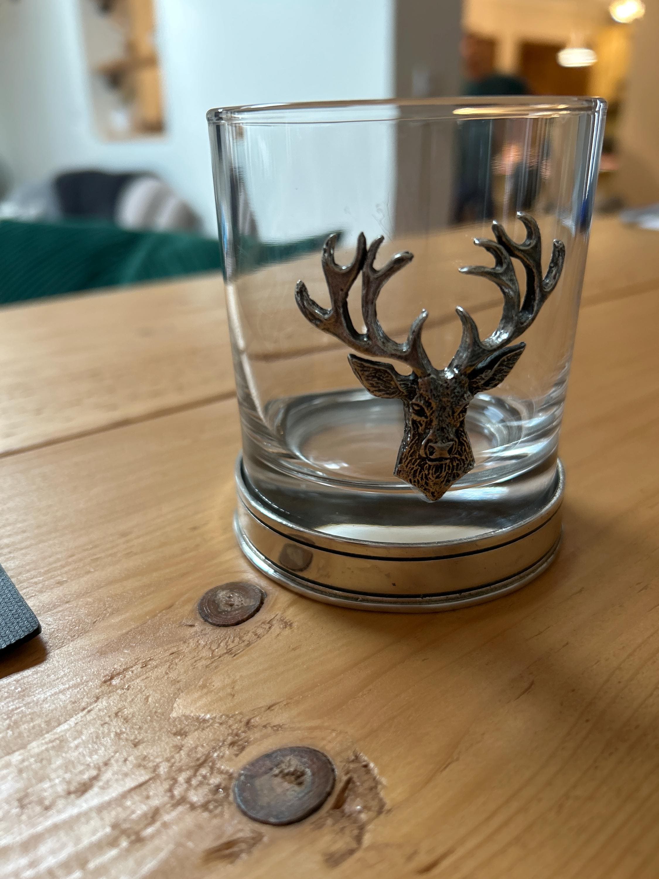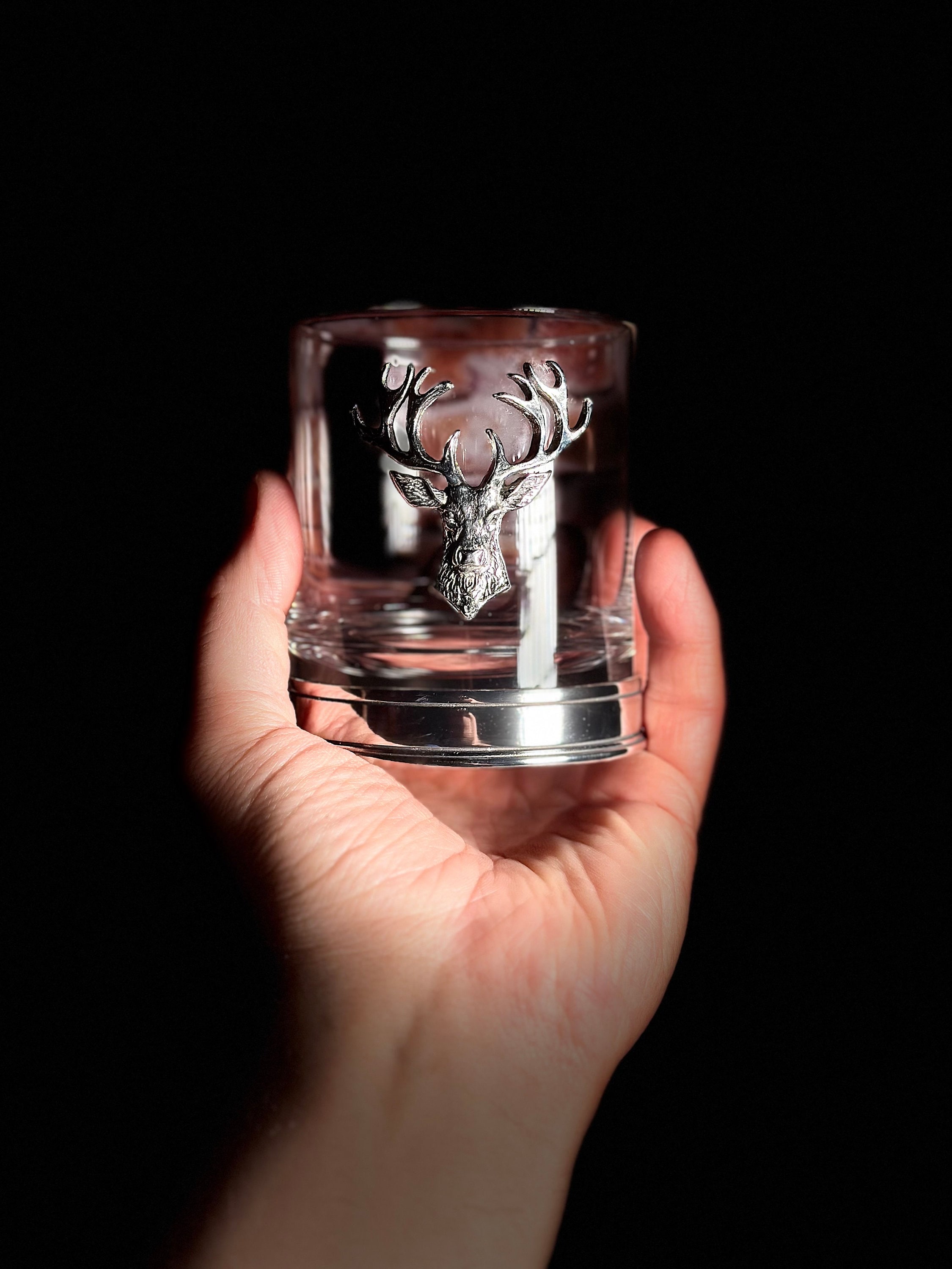 Whether as a gift or a new addition to your own bar collection, our Whisky Glass with a stag head and heavy pewter base embodies the spirit of the wilderness and the refinement of handcrafted artistry, promising to be a cherished piece for years to come.